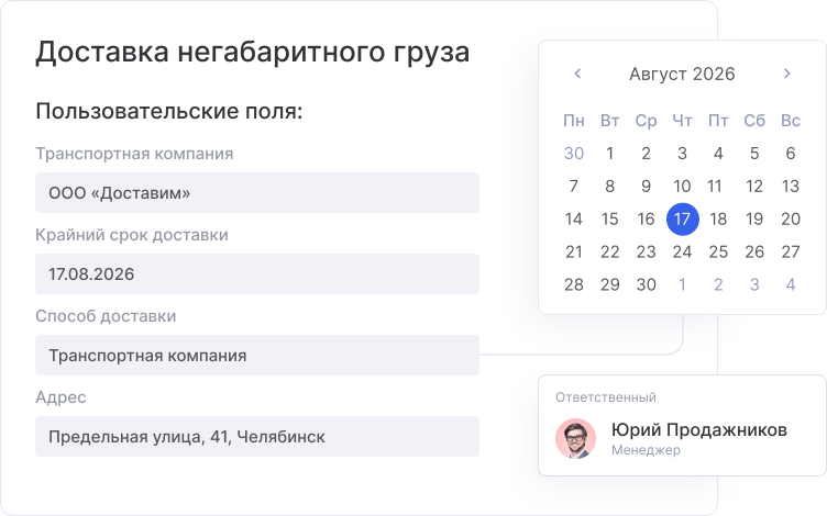 Вся история взаимодействия с клиентом сохраняется в одном месте — карточке контрагента. Благодаря этому менеджер сможет быстро погрузиться в сделку, чтобы узнать предпочтения и возражения заказчика и ответить на любые вопросы. Информация не потеряется, даже если поменяется сотрудник. Так вы улучшите качество обслуживания и повысите лояльность клиентов.