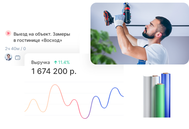 Все зависит от количества сотрудников в вашей компании и необходимых инструментов. Вы можете выбрать один из пяти тарифов Аспро.Cloud для натяжных потолков. А если вы не знаете, какой тариф наиболее эффективно поможет вашему бизнесу, запишитесь на бесплатную демонстрацию. Специалисты Аспро.Cloud ответят на все вопросы и покажут систему в работе.