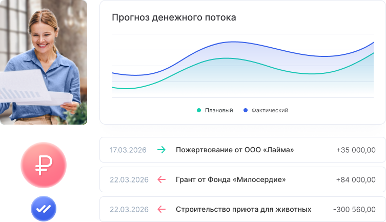 В системе реализован полный цикл финансового контроля: от фиксации поступлений и целевых расходов до автоматического формирования детализированных отчетов. Вы всегда сможете продемонстрировать прозрачность использования средств каждому донору в несколько кликов.