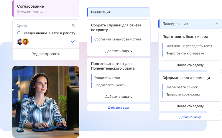 Есть дела важнее, чем сводить таблицы и заполнять документы. Освободите свою команду для реальной работы в CRM-системе для НКО Аспро.Cloud.