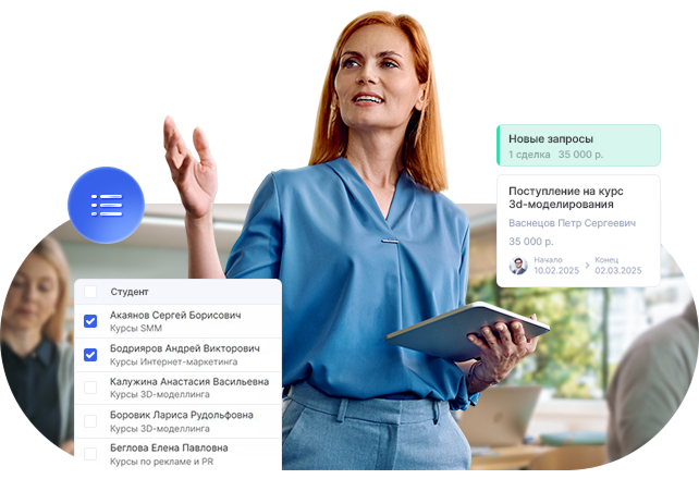 Оптимизируйте работу учебного центра с CRM для образования. Следите за продуктивностью менеджеров, отслеживайте оплаты, повышайте лояльность клиентов, сделайте бизнес-процессы прозрачными. Зарегистрируйтесь и используйте систему бесплатно 14 дней.