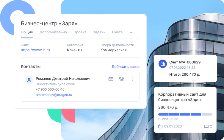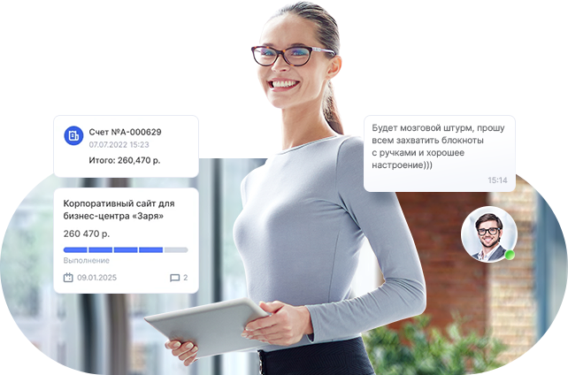 С помощью CRM для рекламного агентства отслеживайте весь процесс продаж в компании и производства рекламы в компании. В CRM Аспро.Cloud доступна автоматизация сбора заявок с сайта с помощью сборщика лидов или установки готовых веб-форм. Запланированные встречи, звонки по клиентам всегда будут перед глазами у менеджеров и выполнены вовремя. При успешном завершении сделки сотрудники могут выставить счет и отправить клиенту на e-mail.