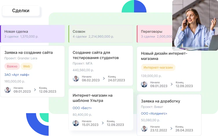 Работайте над проектами, отслеживайте финансы и ведите сделки в единой платформе.