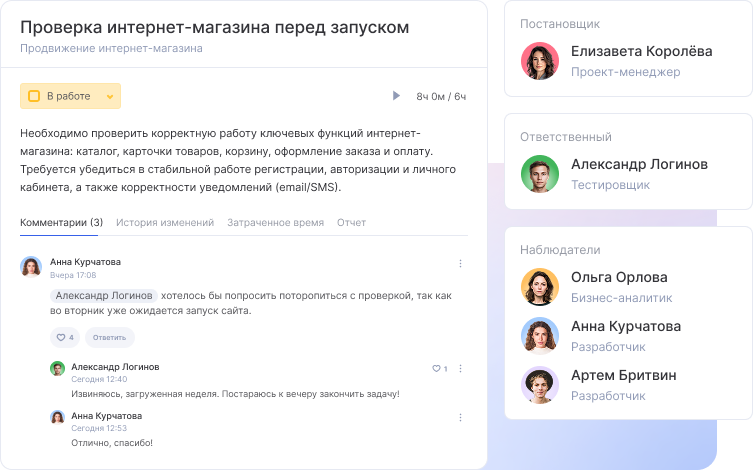 Да, клиенту можно открыть доступ как внешнему пользователю. Он будет видеть только свой проект, задачи и статусы, но не конфиденциальную информацию вашей команды. Это сокращает количество вопросов и делает работу прозрачнее.