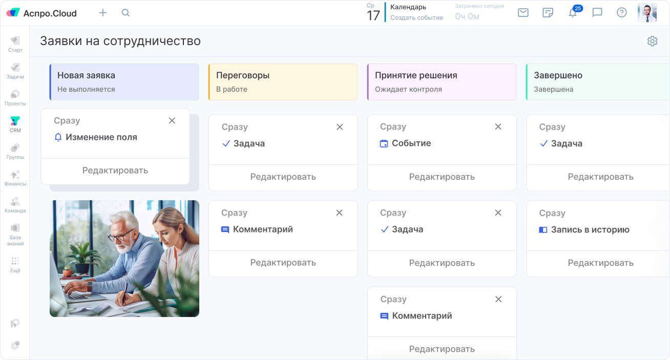 Попробуйте CRM-систему Аспро.Cloud для мебельной компании бесплатно