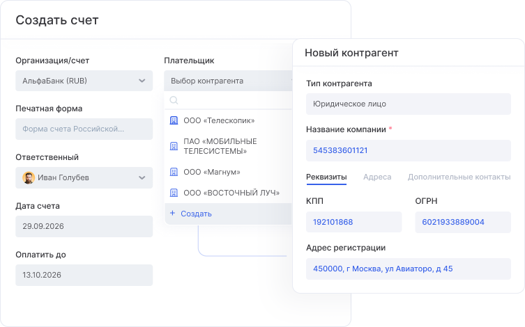 Счета и акты прямо в системе