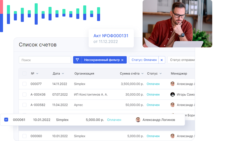 Аспро.Cloud упрощает работу с документами. CRM-система поможет сотрудникам быстро сформировать закрывающие акты или счет на оплату материалов для бухгалтерии. От руководителя необходимо лишь согласовать документ в два клика. Гибкий конструктор позволит подготовить шаблоны счетов и актов под требования вашей проектной организации.