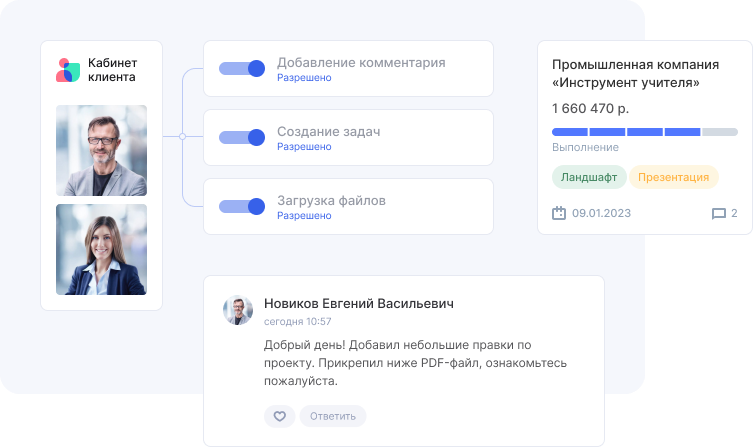 У сотрудников всегда будет доступ к информации по проекту, обсуждениям и задачам.