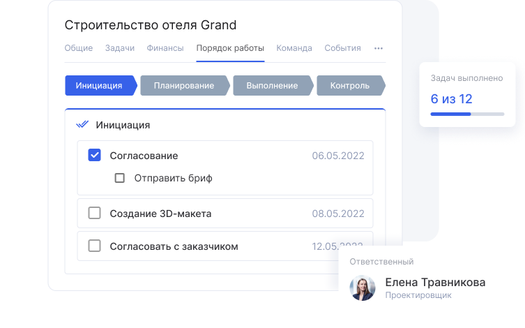 Часть работы руководителя — следить за выполнением задач в срок. Но чтобы проконтролировать весь проект, уходит много времени и сил. Намного проще, если CRM для проектной организации сама напомнит о забытой задаче или близком дедлайне.