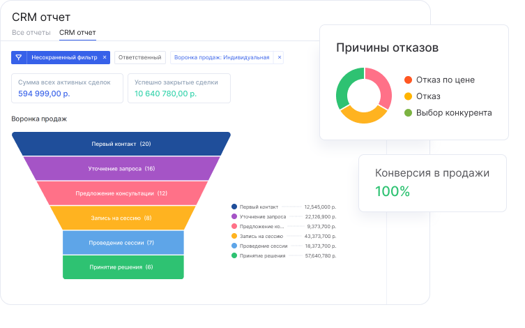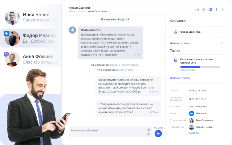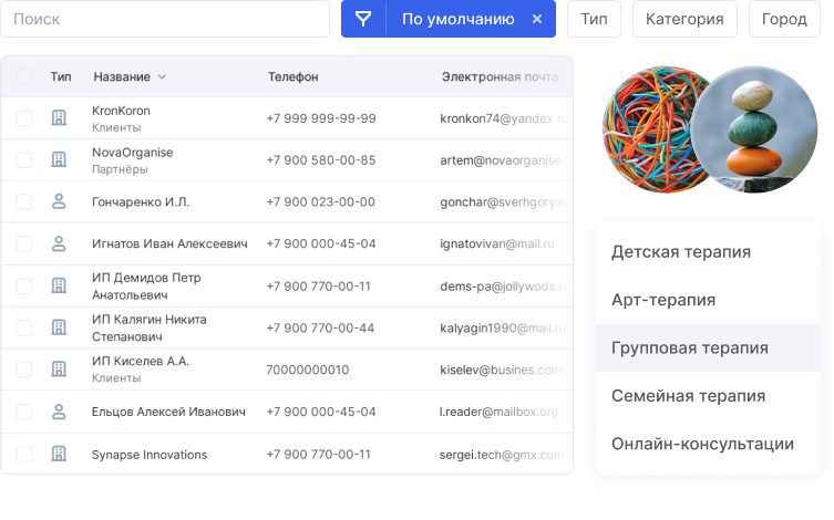 С Аспро.Cloud вы не потеряете связь ни с одним клиентом. Система автоматически фиксирует контакты и сохраняет их в единую базу, чтобы вы могли в любой момент возобновить работу. Благодаря удобным фильтрам карточки клиентов не смешаются между собой. А если вы работаете с корпоративными клиентами, объедините все контакты в карточку компании.