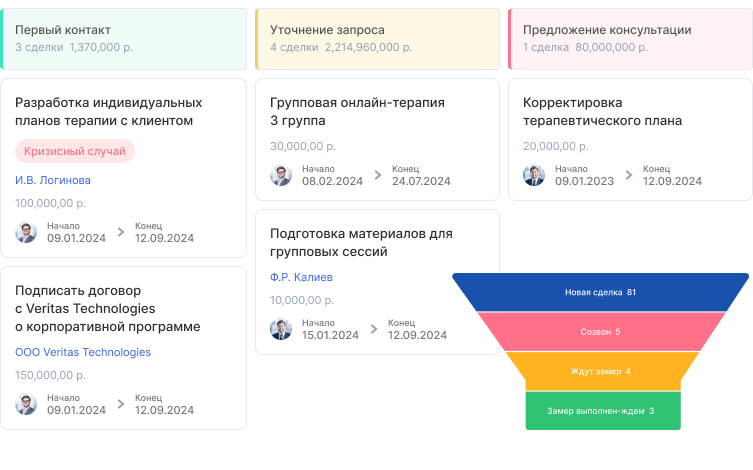 Да, для этого в ЦРМ для психолога есть бесплатный тариф. На нем не ограничено количество пользователей, но недоступны многие инструменты. Начать работу можно на бесплатном тарифе, а затем выбрать более продвинутый тариф.