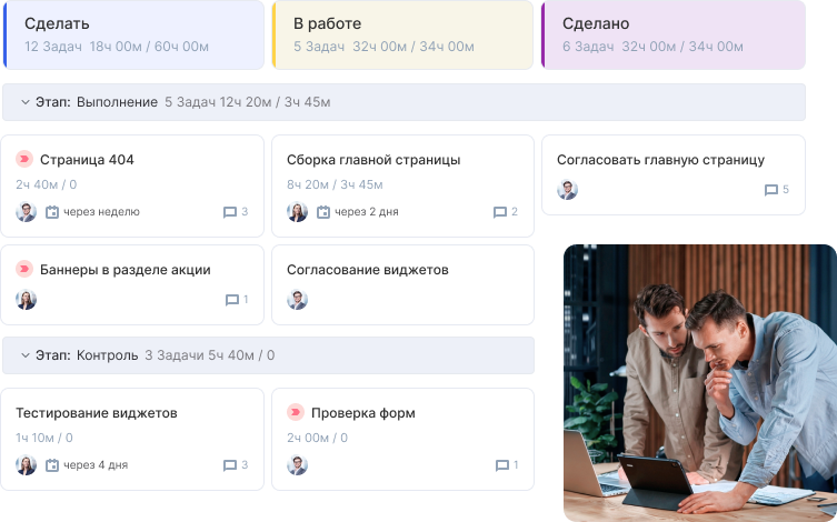 Подойдет для небольших компаний, которым важны отлаженные процессы и инструменты для совместной работы