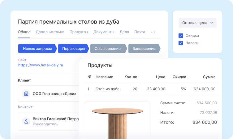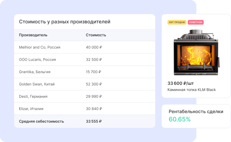 Чтобы быстро оценить рентабельность сделки, складская программа Аспро.Cloud поможет рассчитать себестоимость товара. Если закупочная цена варьируется, система покажет среднее значение. Так будет легче понять, какую скидку можно предложить клиенту.