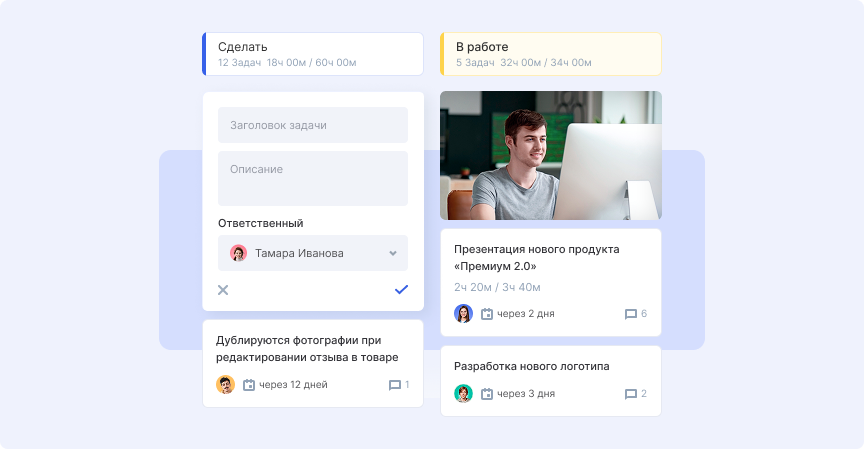 - над одним делом может работать вся команда благодаря комментариям и встроенному чату;