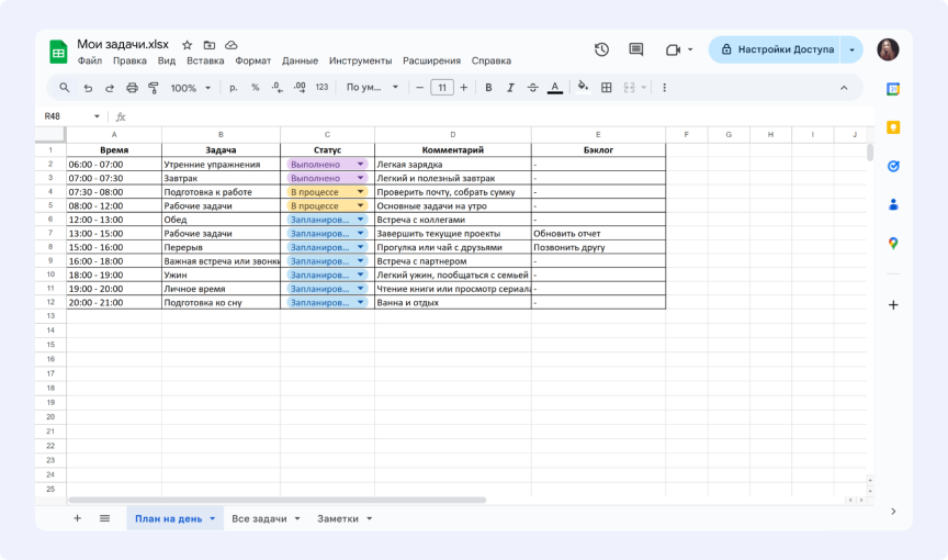 - в виде таблицы у задач будет больше структурированности: их можно разбивать по колонкам или выделять цветом;