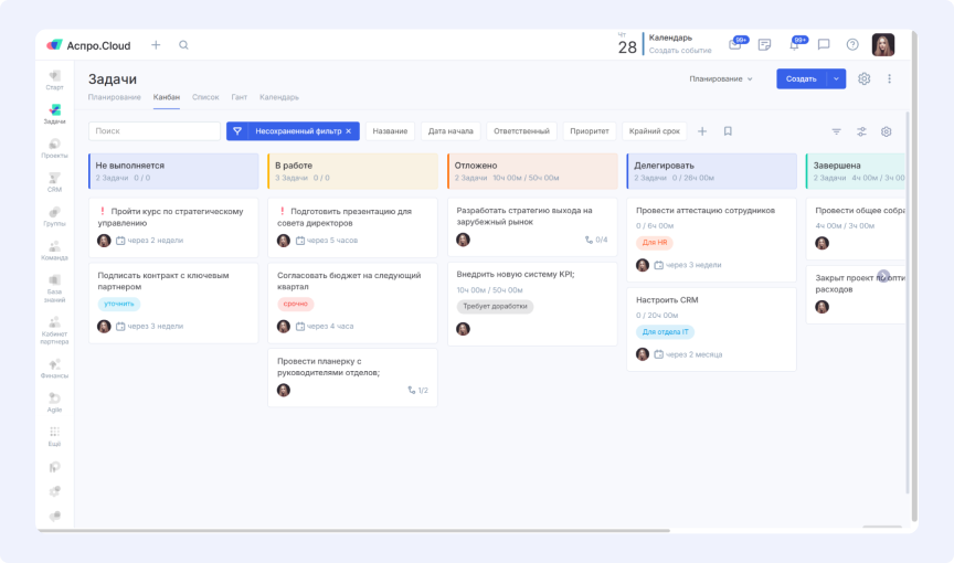 Сделать работу более удобной можно с помощью облачных таск-трекеров, например, Аспро.Cloud. Это особенно актуально при использовании GTD-планирования в бизнесе, когда задач и исполнителей много.
