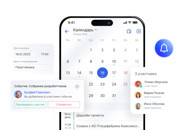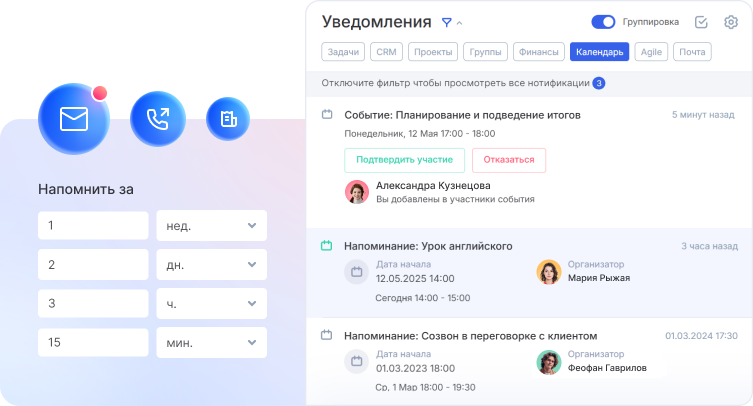 Получайте напоминания и всегда будьте в курсе предстоящих мероприятий.