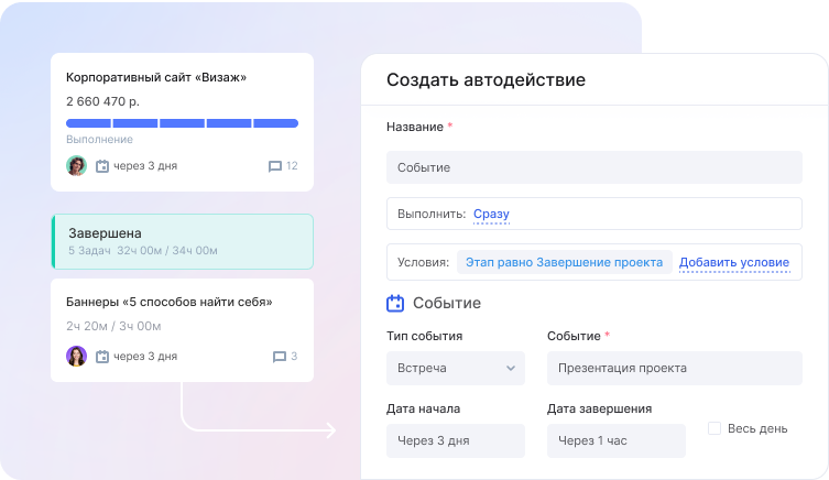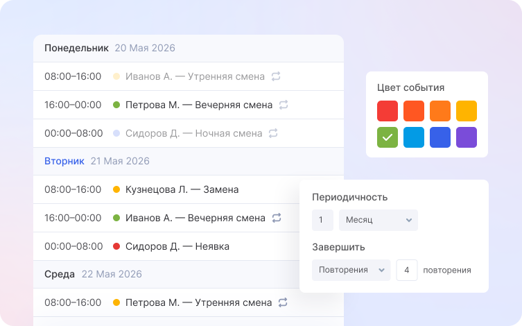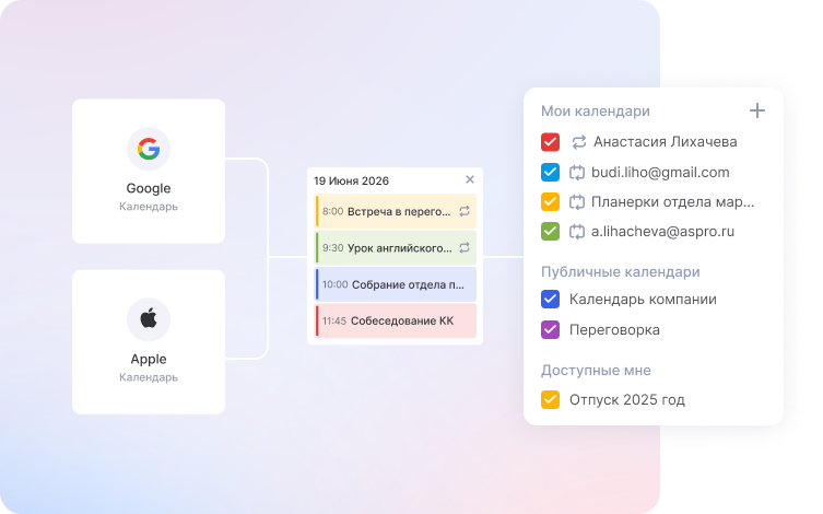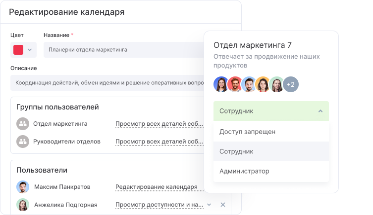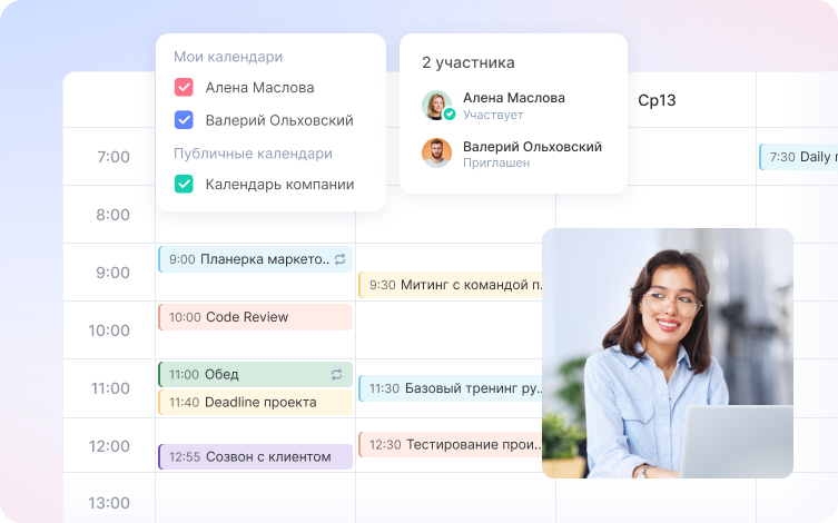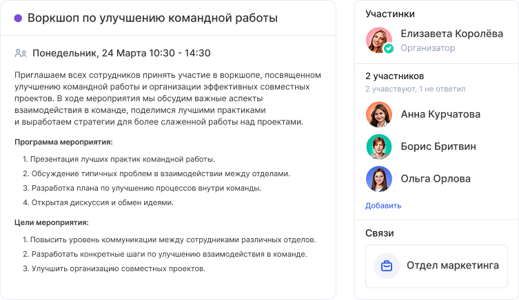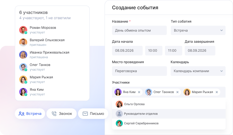 Создавайте события, находите свободные слоты коллег и приглашайте их на встречи