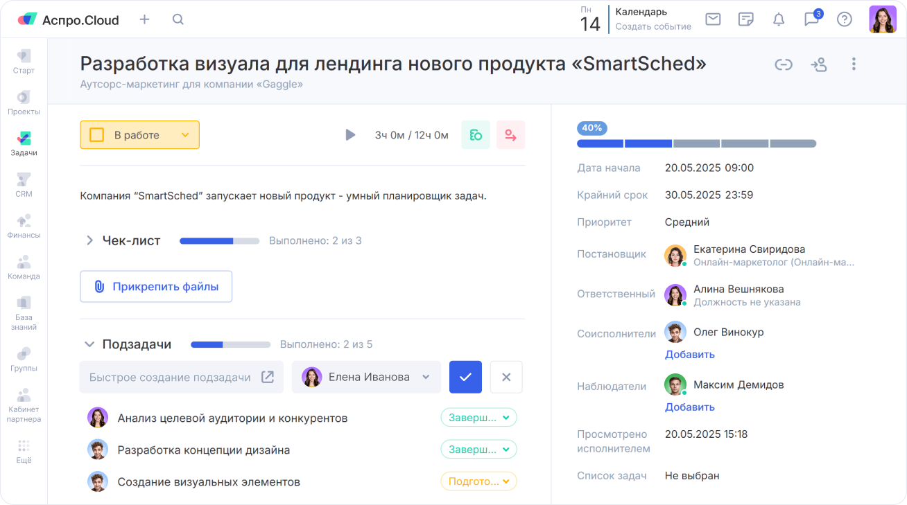 Настроить карточки задач в системе очень просто благодаря интуитивно понятному интерфейсу. Вы можете убедиться в этом сами: просто зарегистрируйтесь в системе и получите бесплатный пробный период на 14 дней.